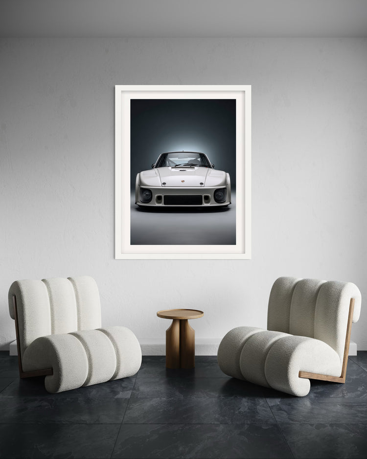Front and centre, Turbo Geometry Face On exudes control and power. A portrait of precision engineering, this 1980 Porsche 935 artwork celebrates form, focus, and the subtle artistry in performance design. Perfect for modern spaces that crave confidence and clean geometry.
